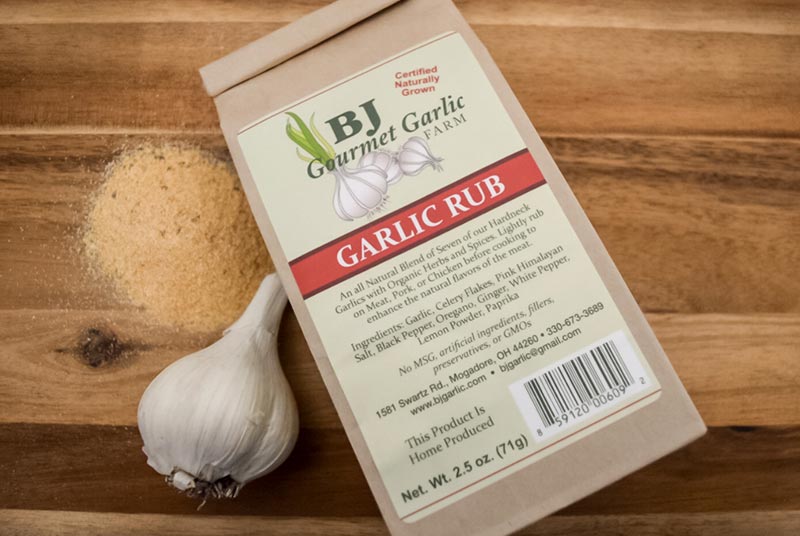 A rub of seasoning for meat, pork, chicken and fish – Our 100% Pure Ground Fresh Garlic blended with all natural organic seasonings.