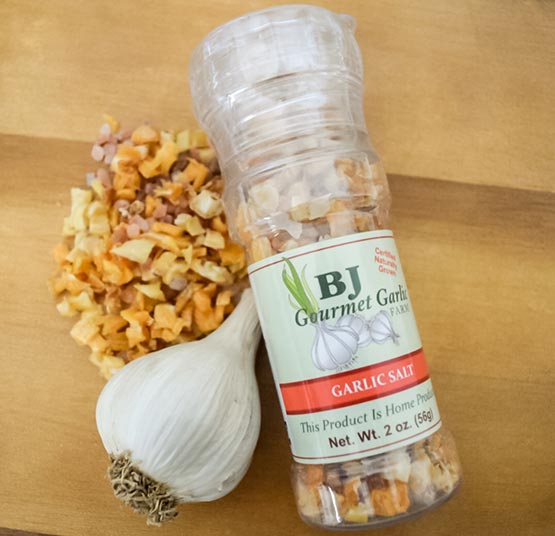100% Pure Dehydrated Fresh Garlic & Pink Himalayan Salt in grinder